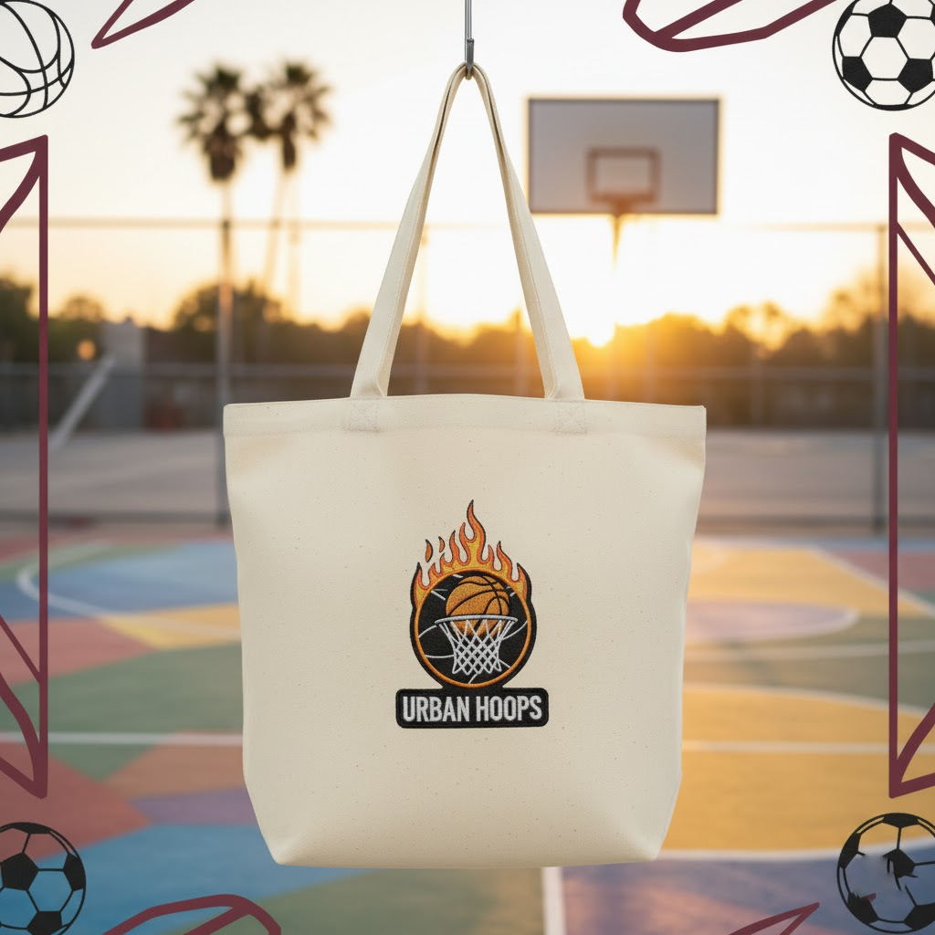 My new 'Urban Hoops' tote bag is fantastic! The canvas material is sturdy and feels very high quality, perfect for carrying my gym essentials or groceries. The basketball logo is beautifully embroidered, adding a cool, subtle sports vibe without being over the top. It's much more durable and stylish than other totes I've owned. Plus, it's a great conversation starter at the court! Love it.