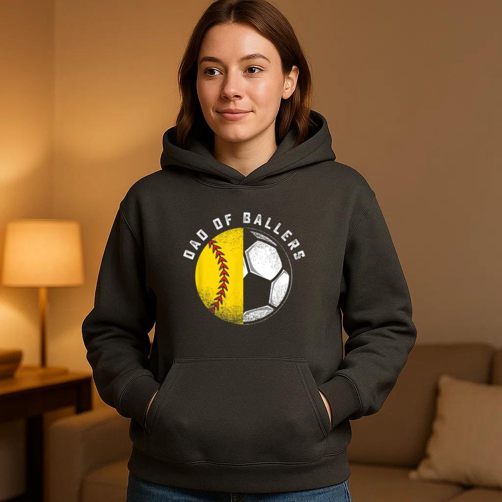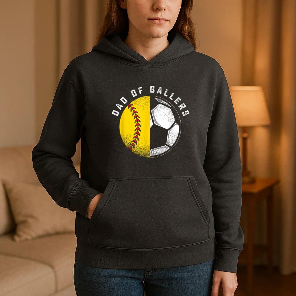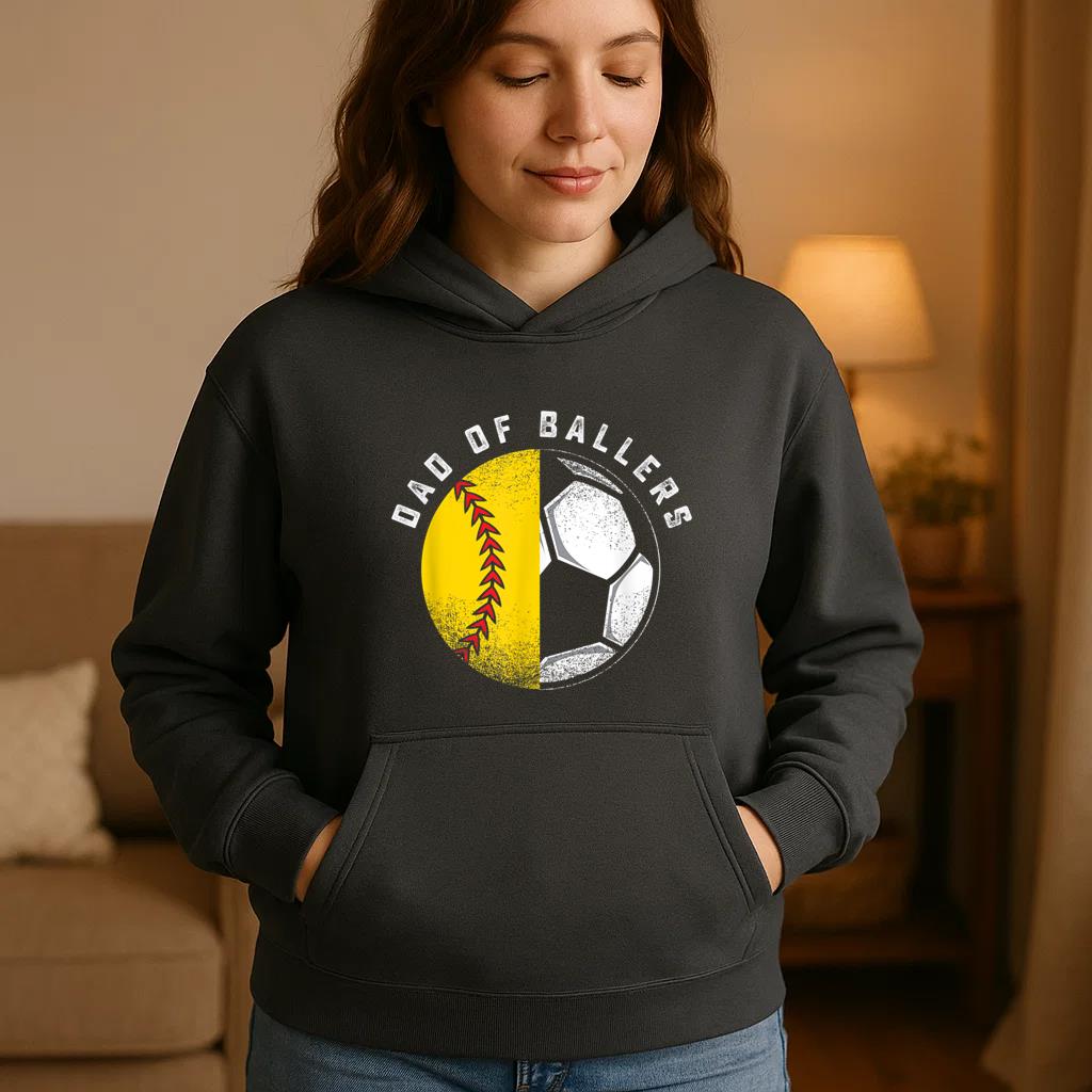 The Dad Of Ballers Father Son Softball Soccer Hoodie hoodie combines comfort warmth and style for a go anywhere piece that works in any season. Soft inside and durable outside it is perfect for layering or lounging