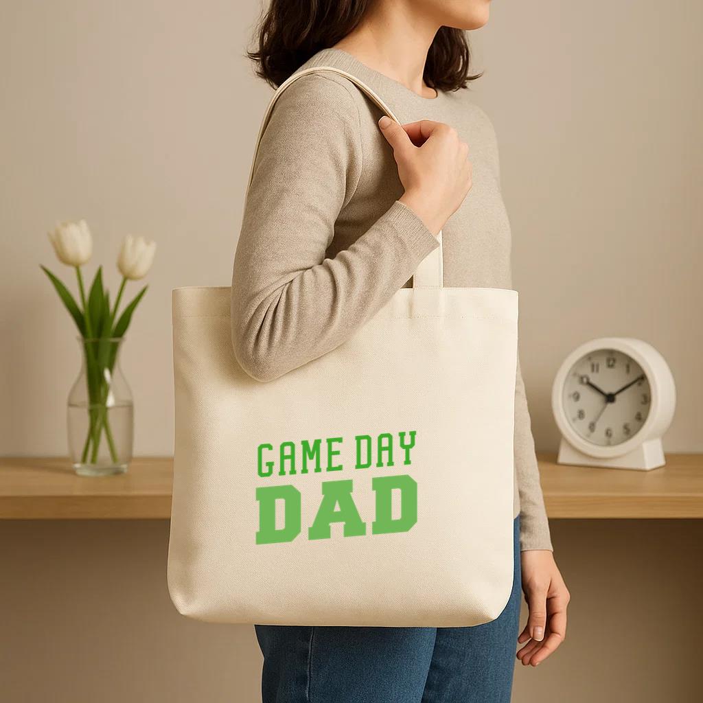 Chic, durable, and reusable , this Game Day Dad Design Canvas Tote Bag Canvas Tote Bag is your daily go-to or a thoughtful gift for any occasion.