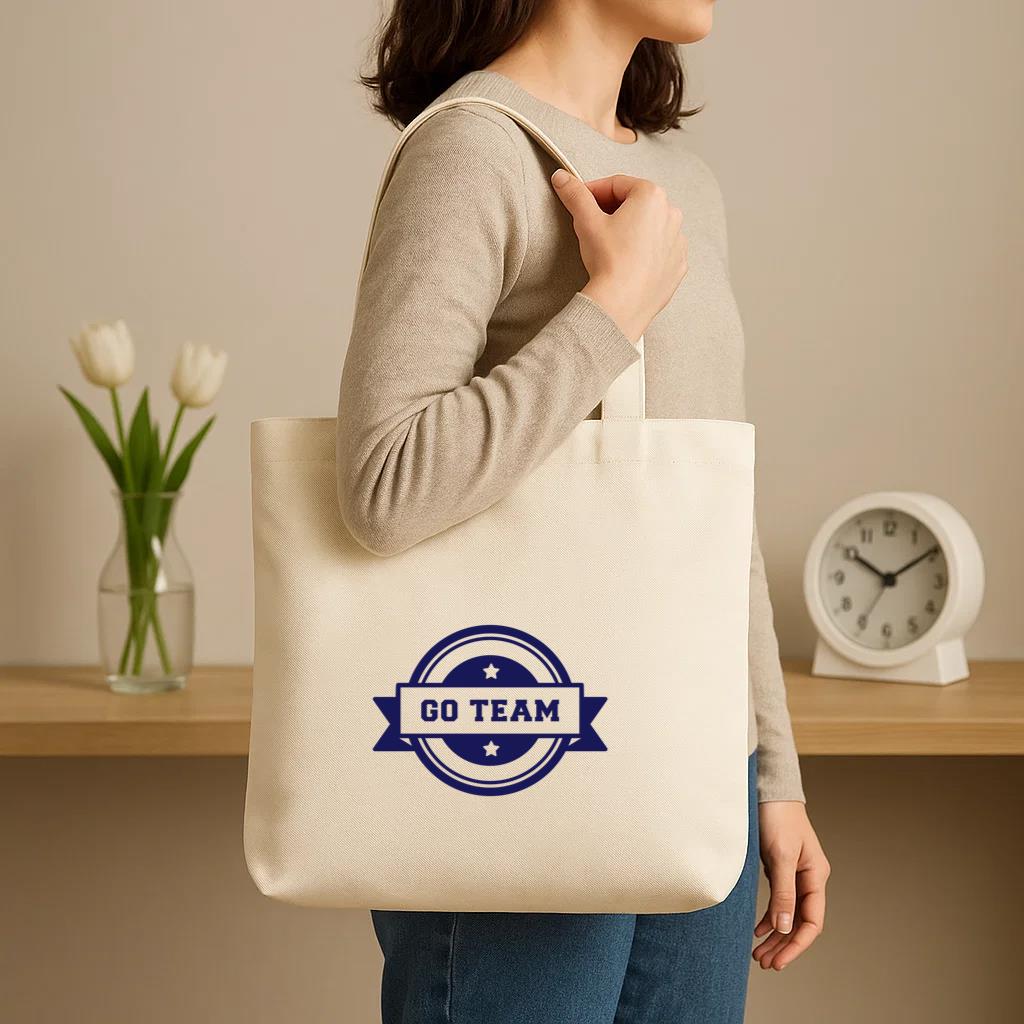 Chic, durable, and reusable , this Go Team Badge Canvas Tote Bag Canvas Tote Bag is your daily go-to or a thoughtful gift for any occasion.
