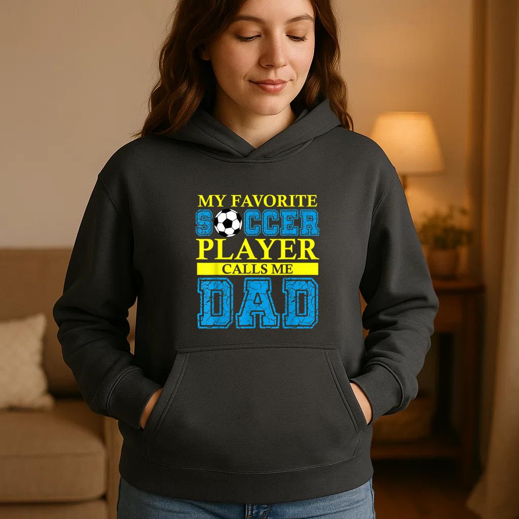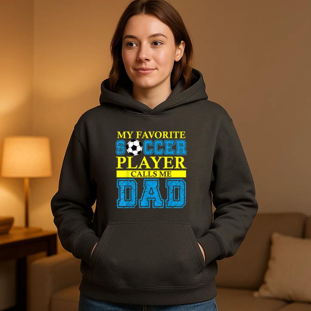 The My Favorite Soccer Player Calls Me Dad Hoodie hoodie combines comfort warmth and style for a go anywhere piece that works in any season. Soft inside and durable outside it is perfect for layering or lounging