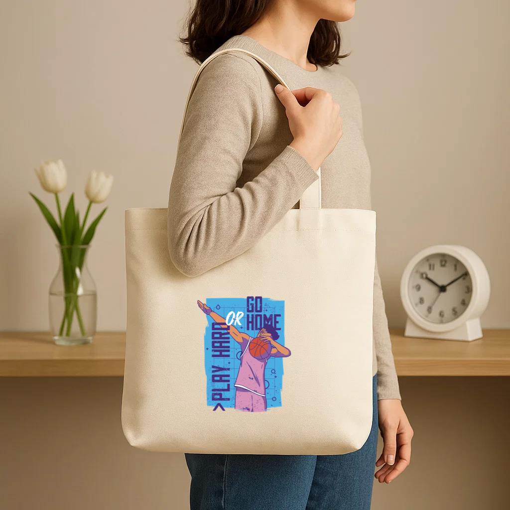Chic, durable, and reusable , this Play Hard Or Go Home Basketball Canvas Tote Bag Canvas Tote Bag is your daily go-to or a thoughtful gift for any occasion.