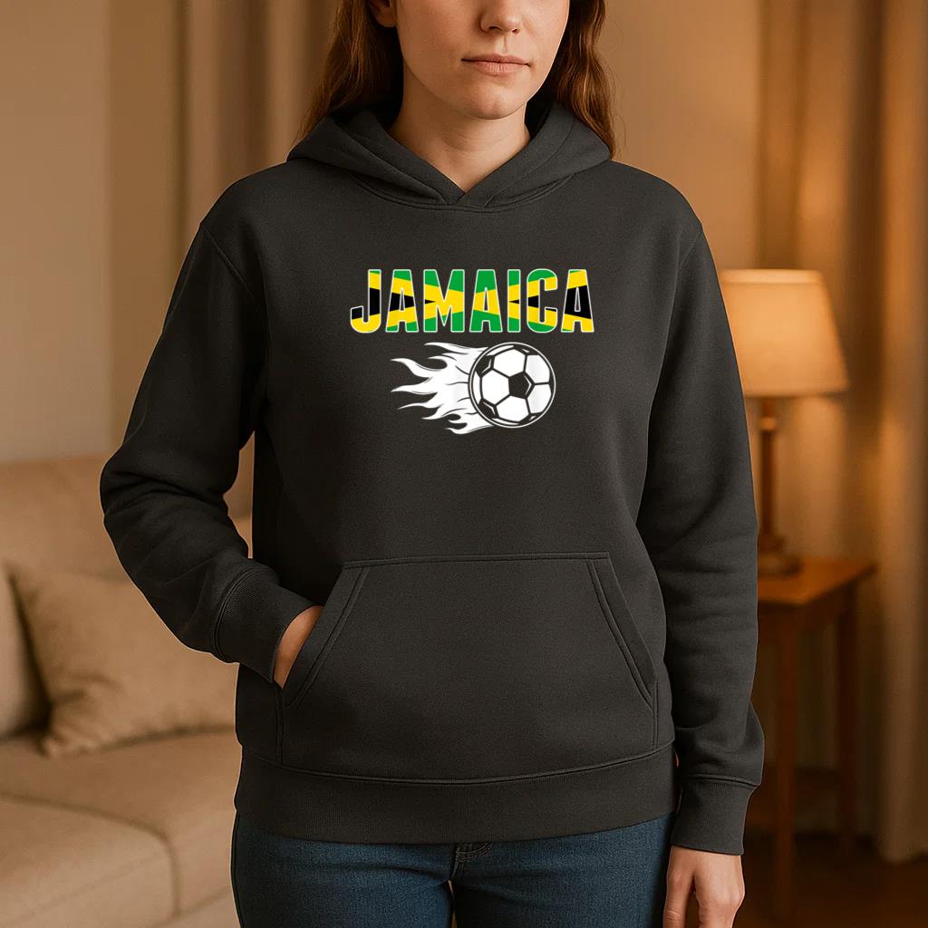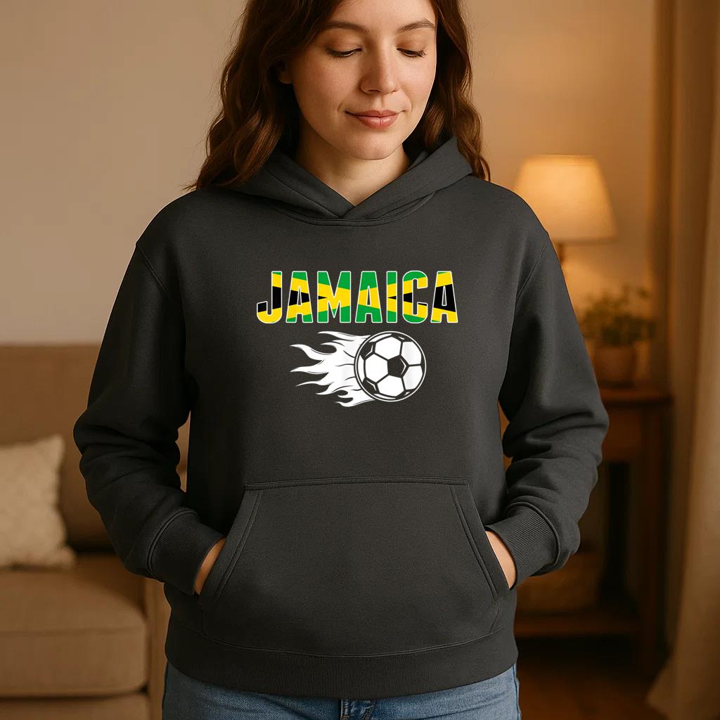 The Proud Jamaica Soccer Hoodie hoodie combines comfort warmth and style for a go anywhere piece that works in any season. Soft inside and durable outside it is perfect for layering or lounging