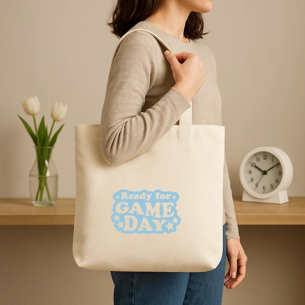 Chic, durable, and reusable , this Ready For Game Day Sticker Canvas Tote Bag Canvas Tote Bag is your daily go-to or a thoughtful gift for any occasion.