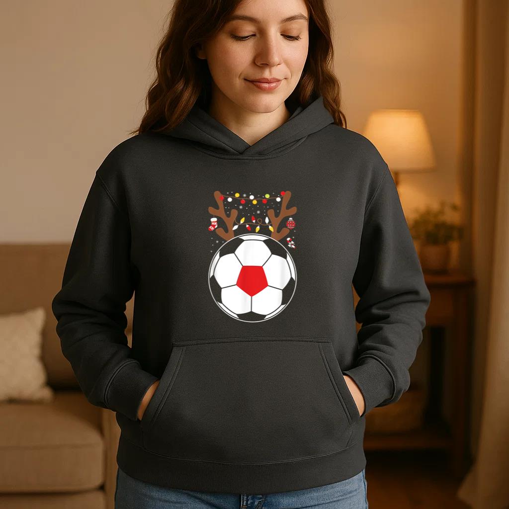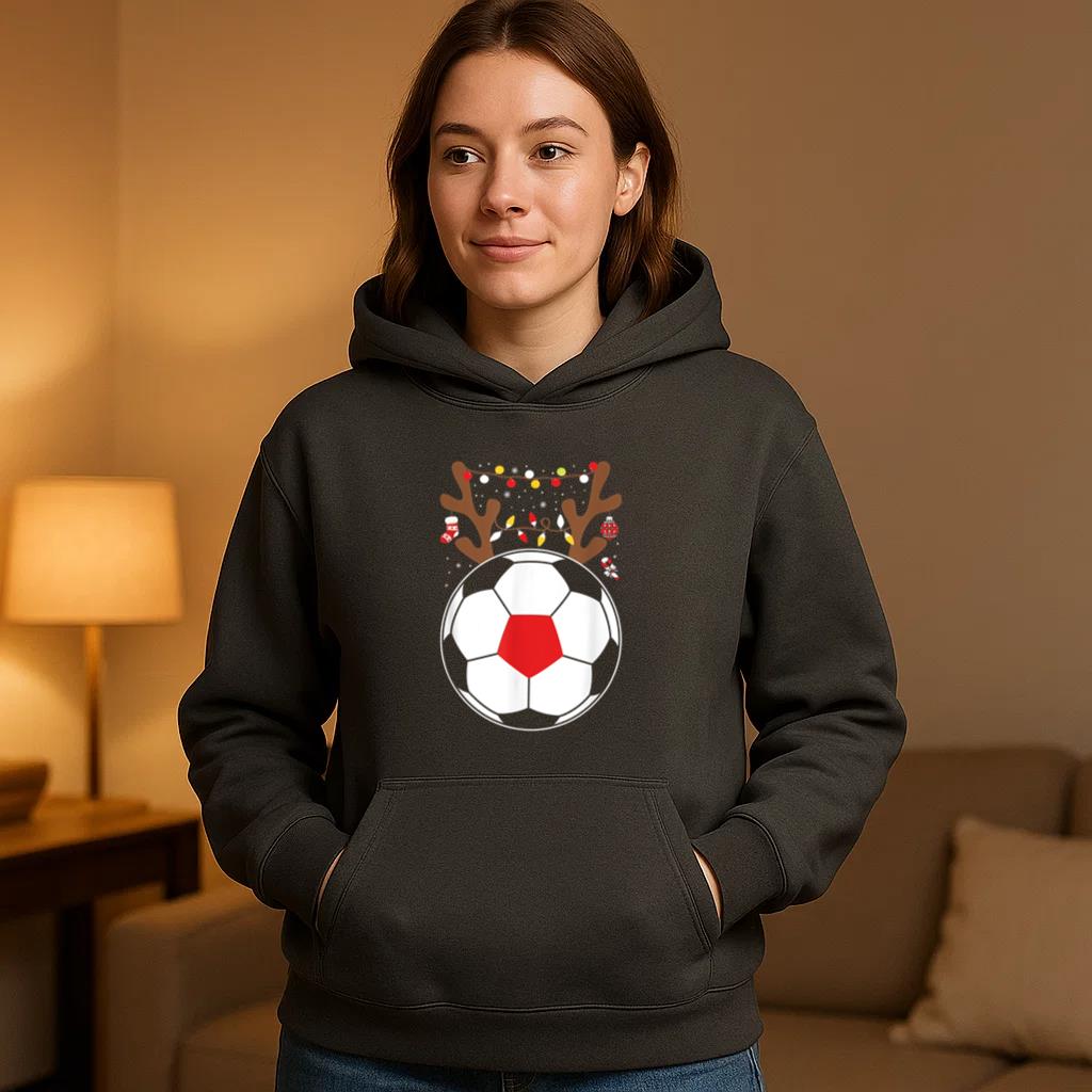 The Reindeer Soccer Ball Deer Hoodie hoodie combines comfort warmth and style for a go anywhere piece that works in any season. Soft inside and durable outside it is perfect for layering or lounging