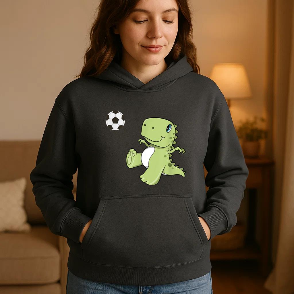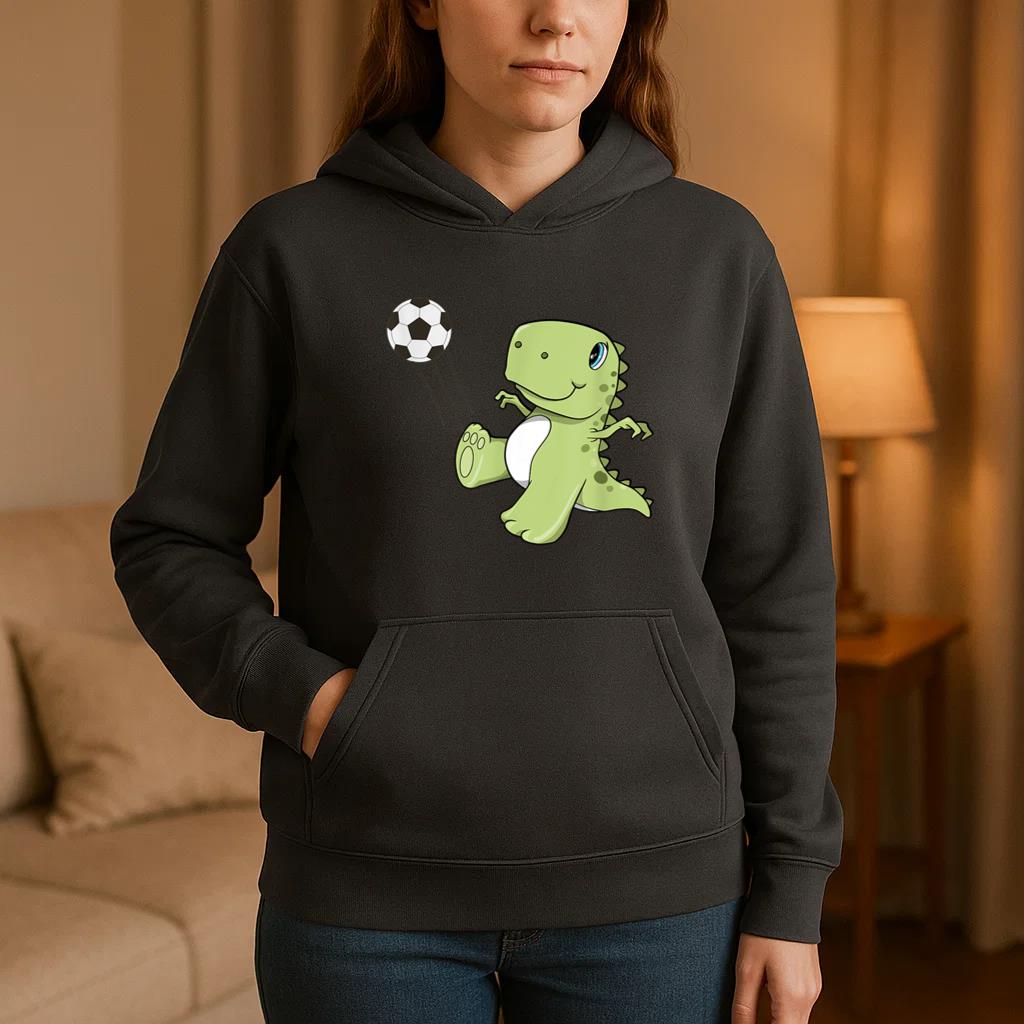 The T-Rex Soccer Player Hoodie hoodie combines comfort warmth and style for a go anywhere piece that works in any season. Soft inside and durable outside it is perfect for layering or lounging